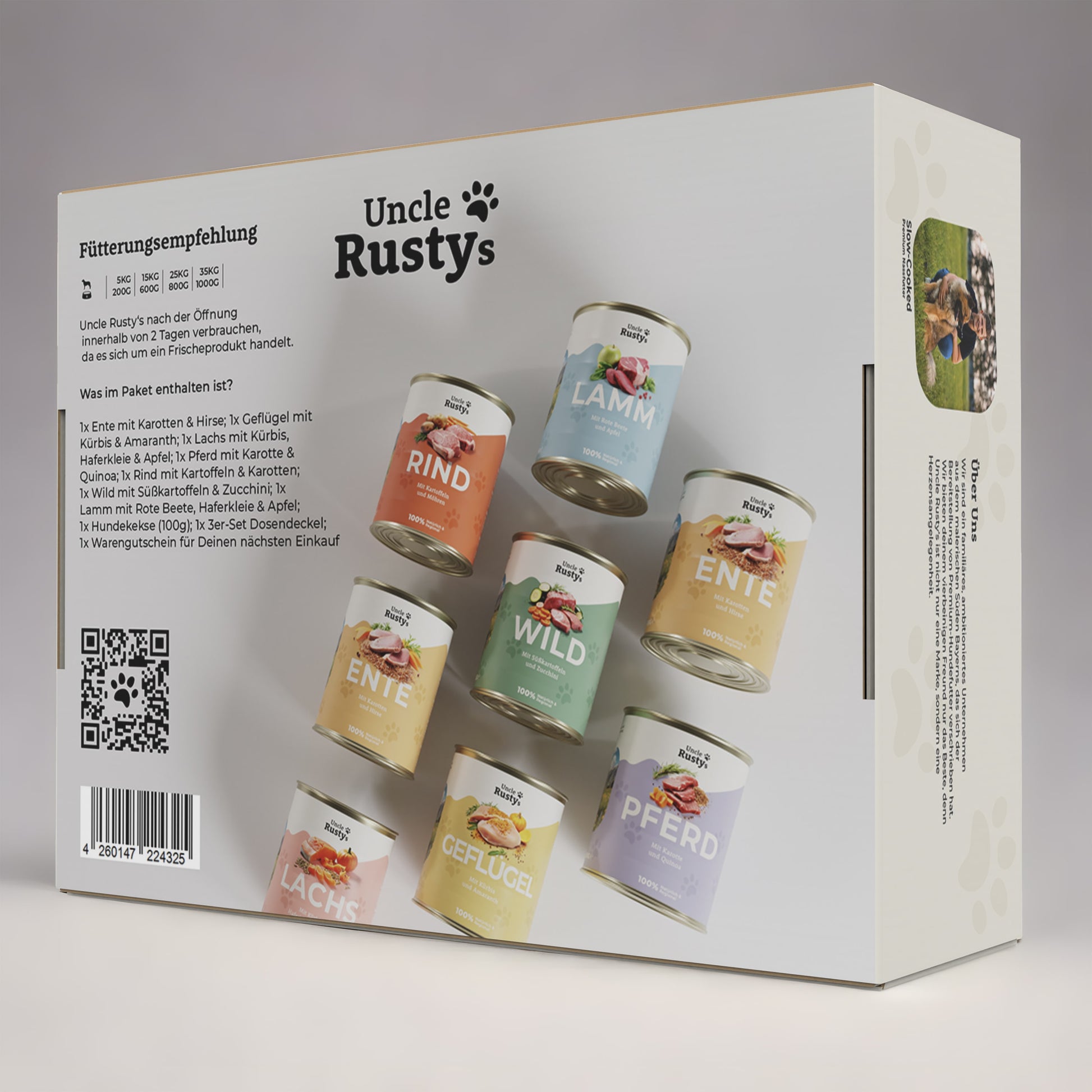 Uncle Rusty's Menüs sind für eine breite Palette von Hunden geeignet und bieten Anpassungsmöglichkeiten, Ergänzungen und Individualisierungen.